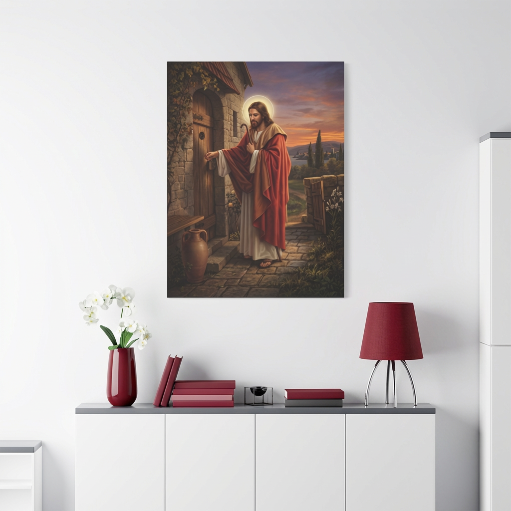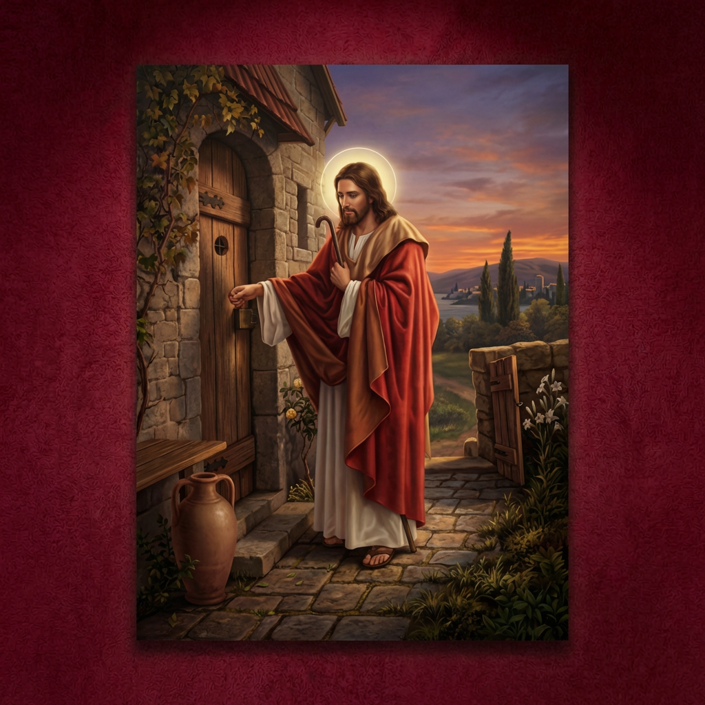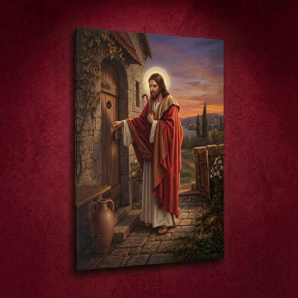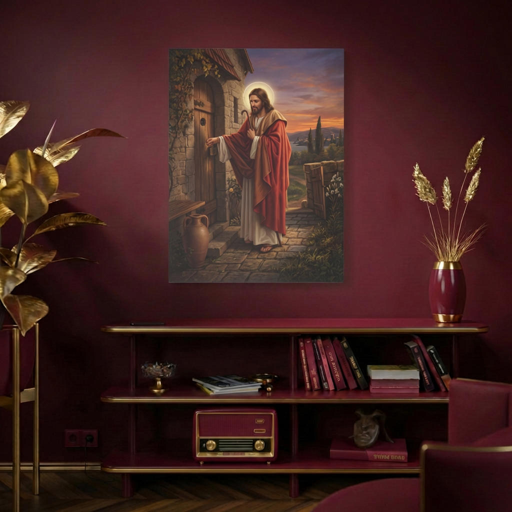 ይህ ልብን የሚነካ ሥዕለ አድኅኖ፣ ጌታችንና መድኃኒታችን ኢየሱስ ክርስቶስ በልባችን በር ላይ ቆሞ በታላቅ ትዕግሥትና ፍቅር ሲያንኳኳ ያሳያል። ይህ ሥዕል ጌታችን በግዳጅ ሳይሆን በፈቃዳችን እንድንቀበለው የሚያደርገውን ዘላለማዊ ጥሪ የሚያስታውስ ነው። በቤትዎ ሲሰቀል፣ ዘወትር ልብዎንና ቤትዎን ለክርስቶስ ክፍት አድርገው እንዲጠብቁ፣ እንዲሁም የእርሱን መንፈሳዊ ድምፅ ለመስማት እንዲተጉ ያነቃቃዎታል።