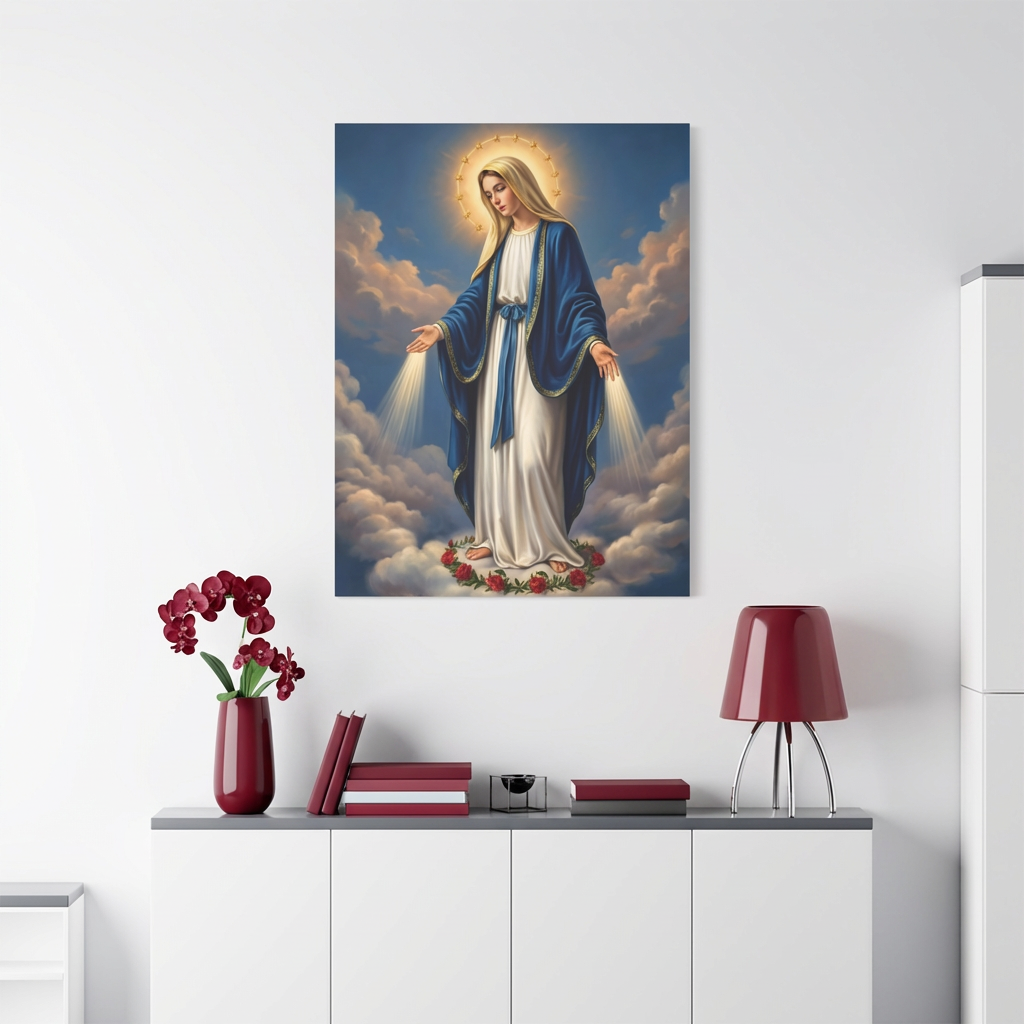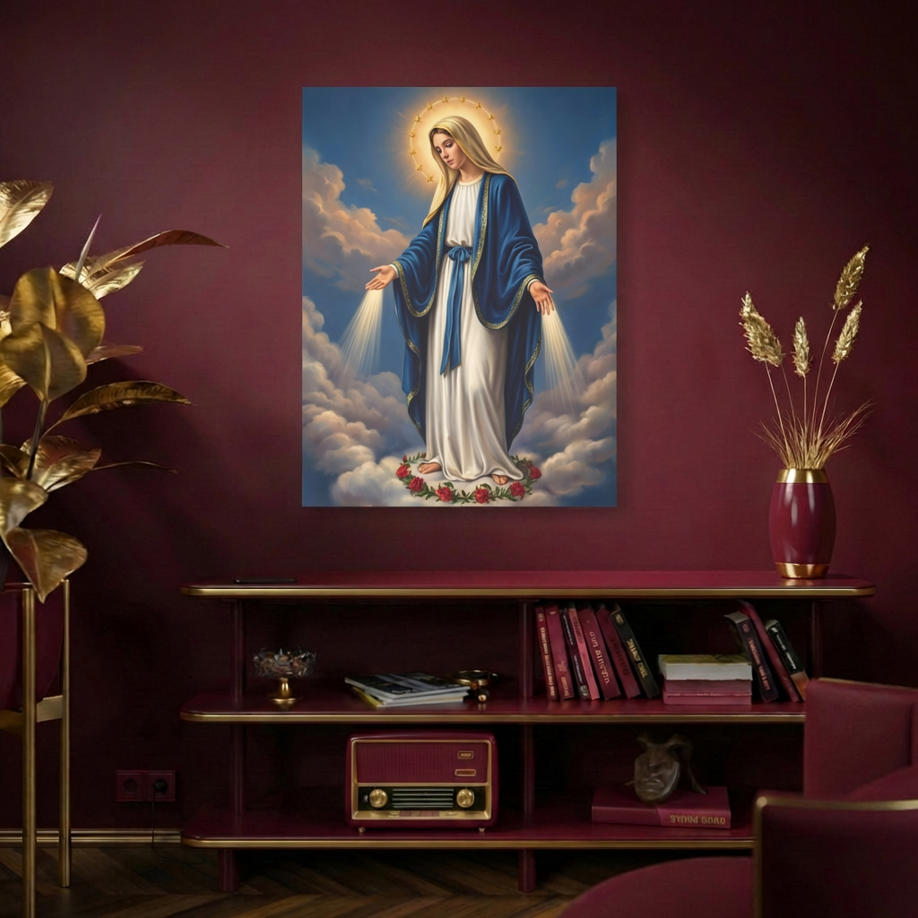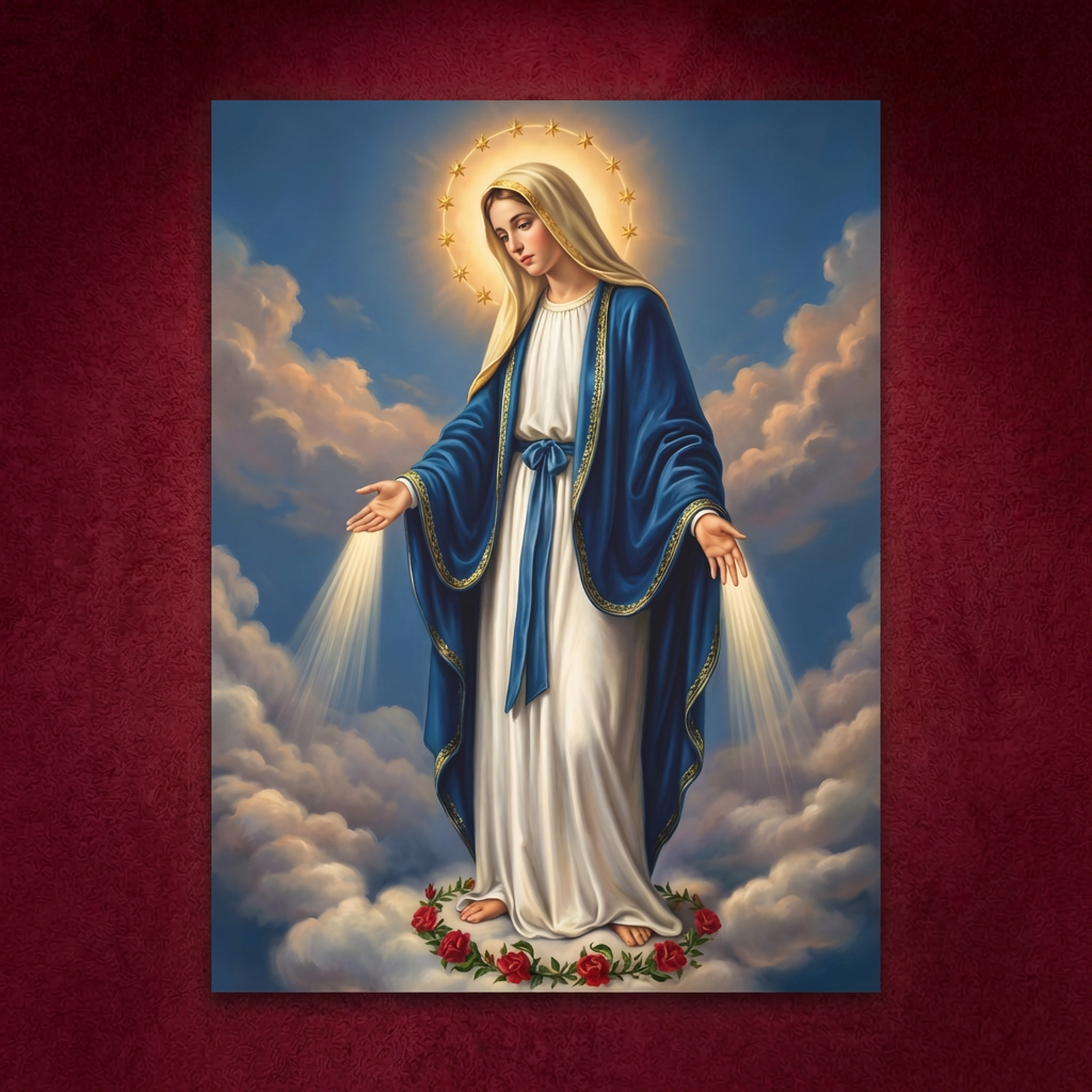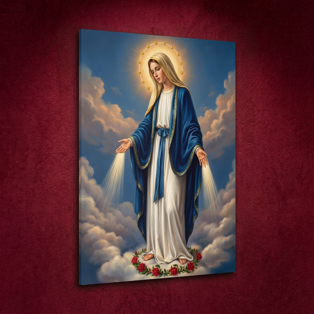 ይህ ሥዕለ አድኅኖ እናታችን ቅድስት ድንግል ማርያምን በሰማያዊ ክብር፣ ከእጆቿ በሚወጣ የጸጋ ብርሃንና በከዋክብት አክሊል አጊጣ ያሳያል። ይህ ሥዕል የእመቤታችንን አማላጅነት፣ ርኅራኄና ለሰው ልጆች ያላትን ጥልቅ ፍቅር በጉልህ ይገልጻል። በቤትዎ ሲሰቀል፣ ቤተሰብዎን በእናትነት ፍቅሯ አቅፋ እንደምትጠብቅና ጸጋዋን እንደምታፈስስልዎ ሕያው ማረጋገጫ ይሆናል።